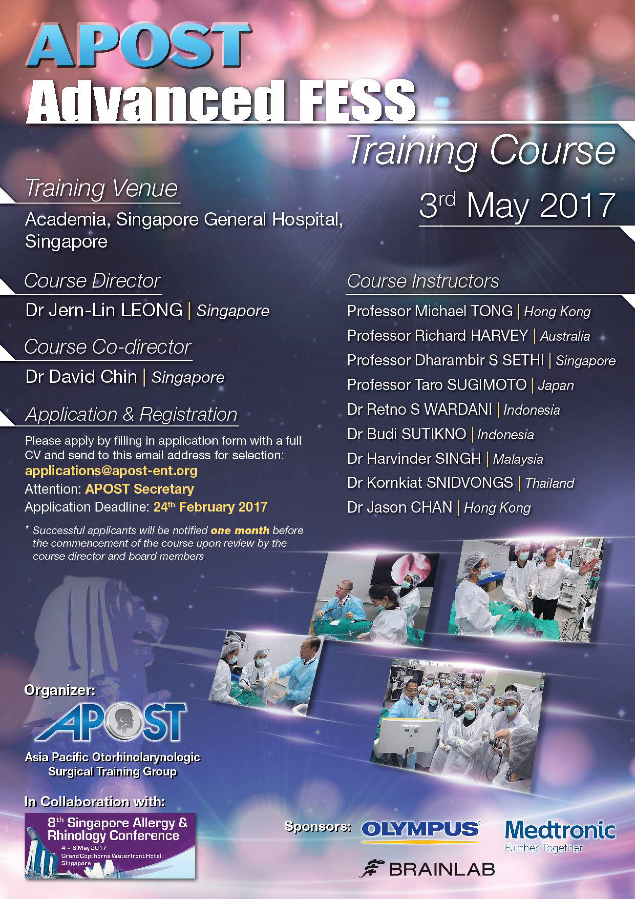 The intensive course is designed for senior residents/junior consultants interested in the most recent advances in endoscopic sinus surgery.