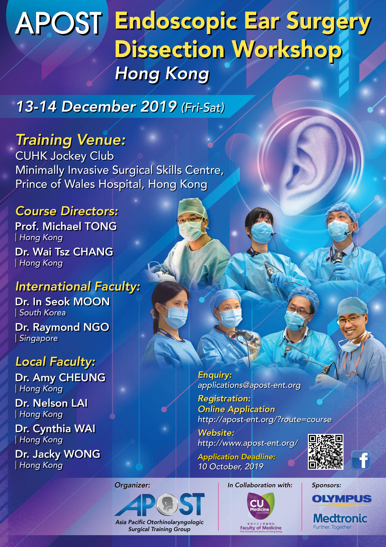 With recent advances in endoscopic treatment of disorders of the ear, it is imperative that otolaryngologists and otologists in particular are up to date on the latest surgical techniques and development. This training course therefore aims to provide an educational platform to ENT doctors from the Asia-Pacific region to gain knowledge, insights and hands-on practice in a step-by-step approach.