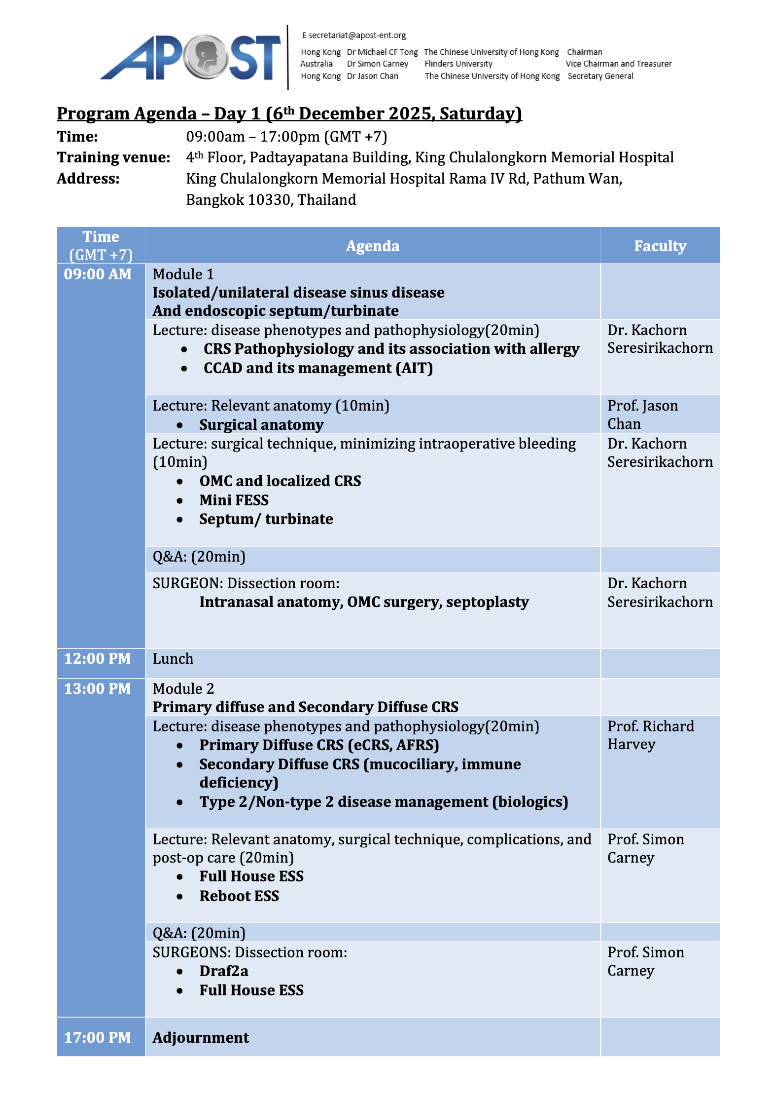 Observer registration is now open for the APOST Bangkok FESS Course, 6–7 December 2025 at Chulalongkorn Hospital.